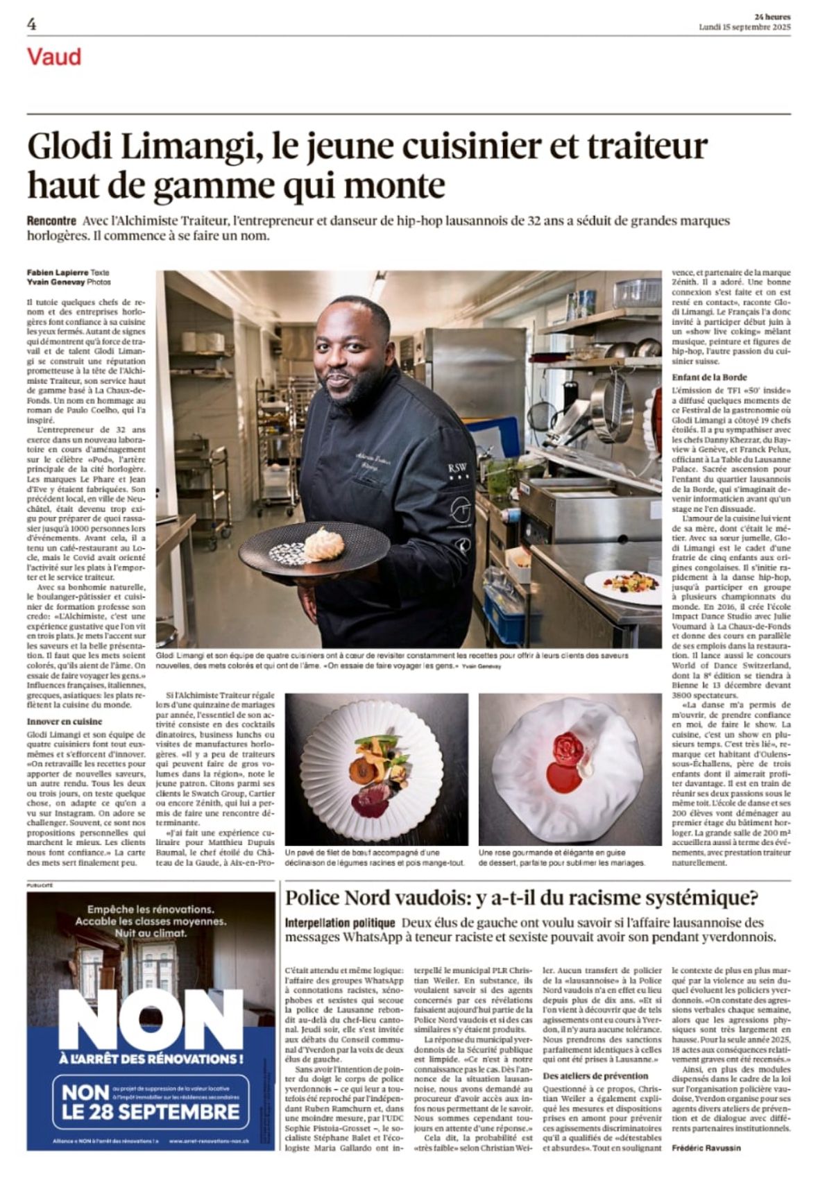 Avec l’Alchimiste Traiteur, le cuisinier et danseur de hip-hop lausannois a séduit de grandes marques horlogères.